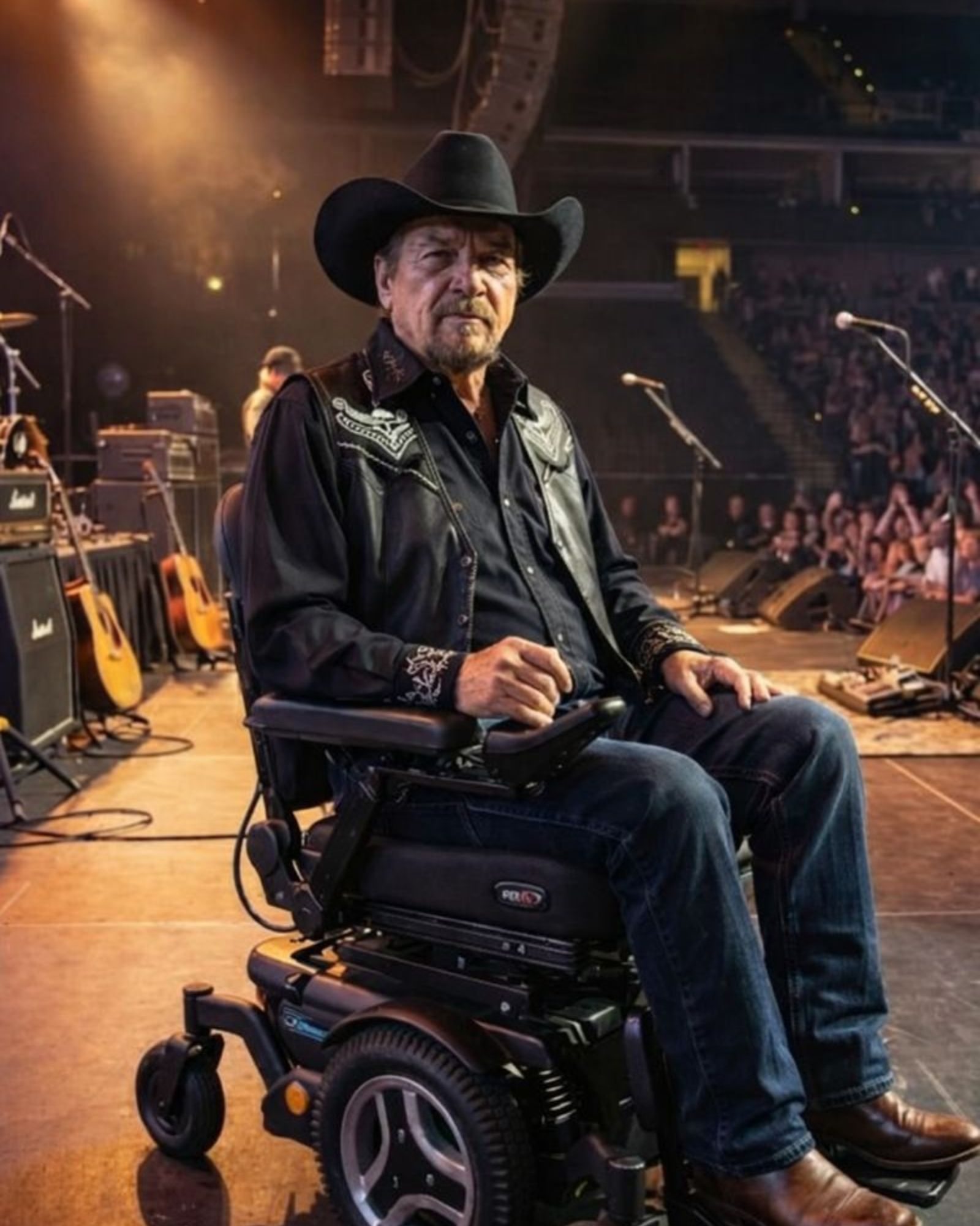 Waylon had spent decades on his feet. Standing under hot stage lights. Leaning into microphones worn smooth by time. Letting songs carry him night after night across America. His body had always been part of the performance. His stance. His stillness. His presence. Losing any part of that was not just physical — it was personal.